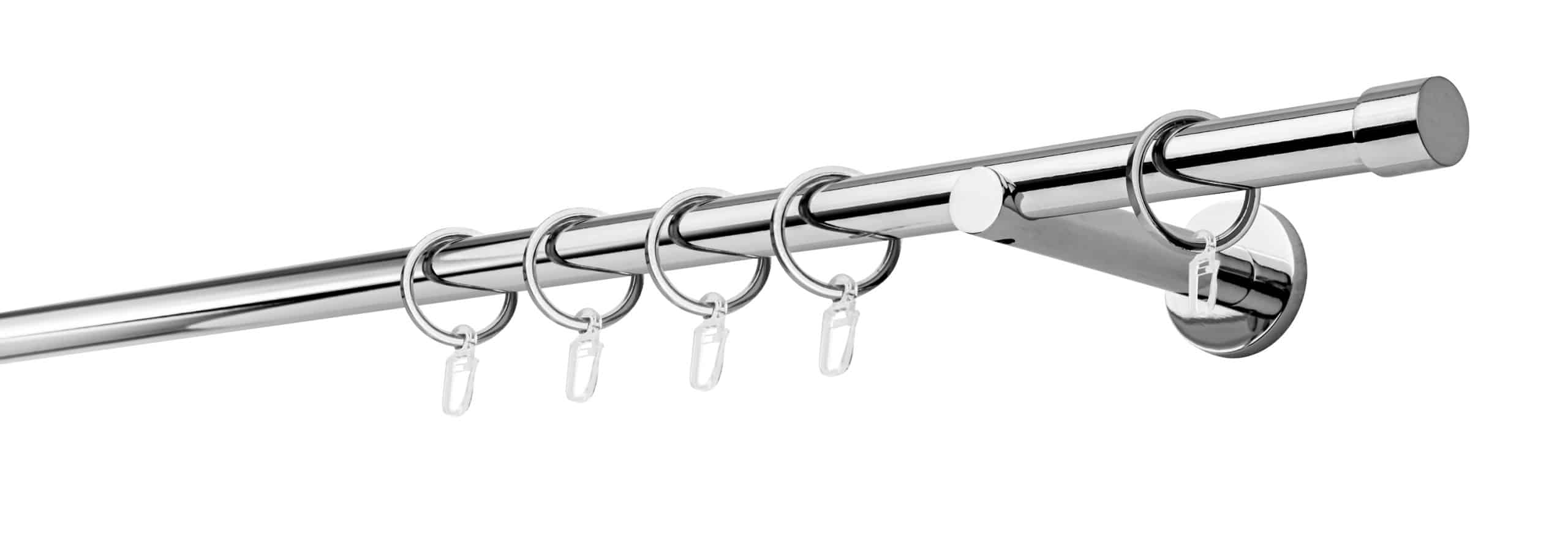 Diese Garnitur ist mehr als nur eine funktionale Halterung für Ihre Vorhänge oder Gardinen. Sie ist ein Designelement, das die Optik Ihrer Fenster aufwertet und das Ambiente Ihres Zuhauses bereichert. Die Kombination aus robustem Rohr, stabilen Wandträgern und edlen Chrom-Endstücken macht diese Garnitur zu einem echten Hingucker.