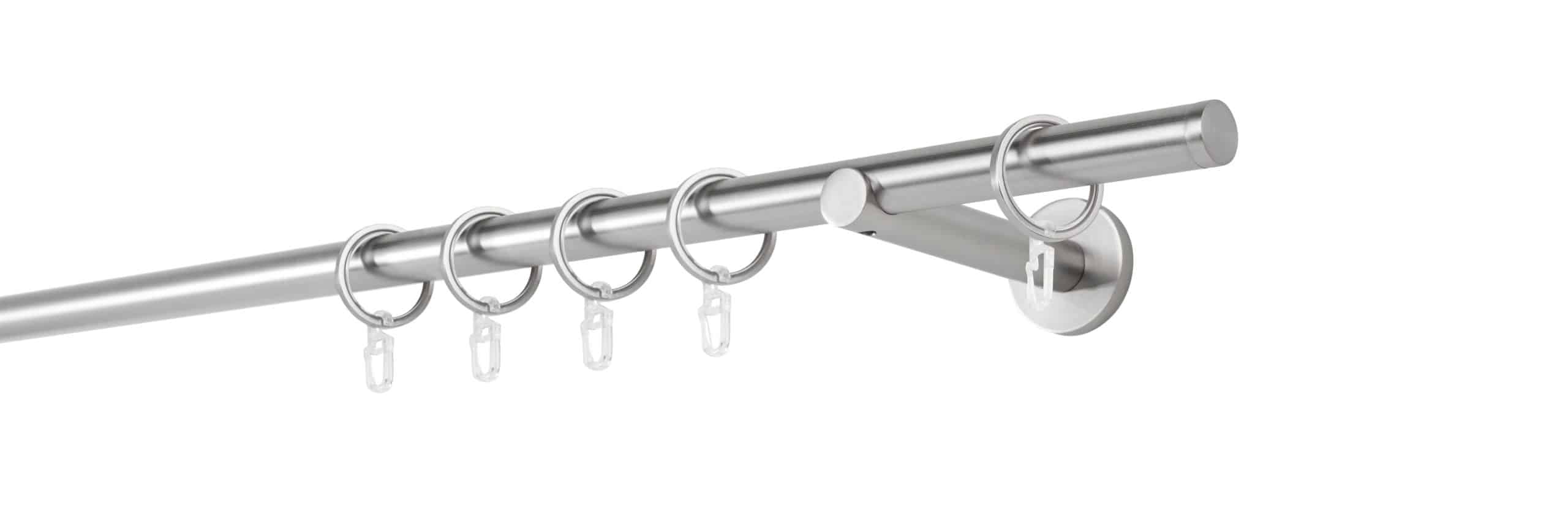 Das 20mm Rohr aus robustem Metall sorgt für eine stabile Aufhängung Ihrer Gardinen und Vorhänge, während der Wandträger mit seiner 12cm Ausladung ausreichend Platz für voluminöse Stoffe bietet. Das Endstück in passender Edelstahl-Optik rundet das Gesamtbild harmonisch ab und verleiht Ihrem Fenster eine edle Note.