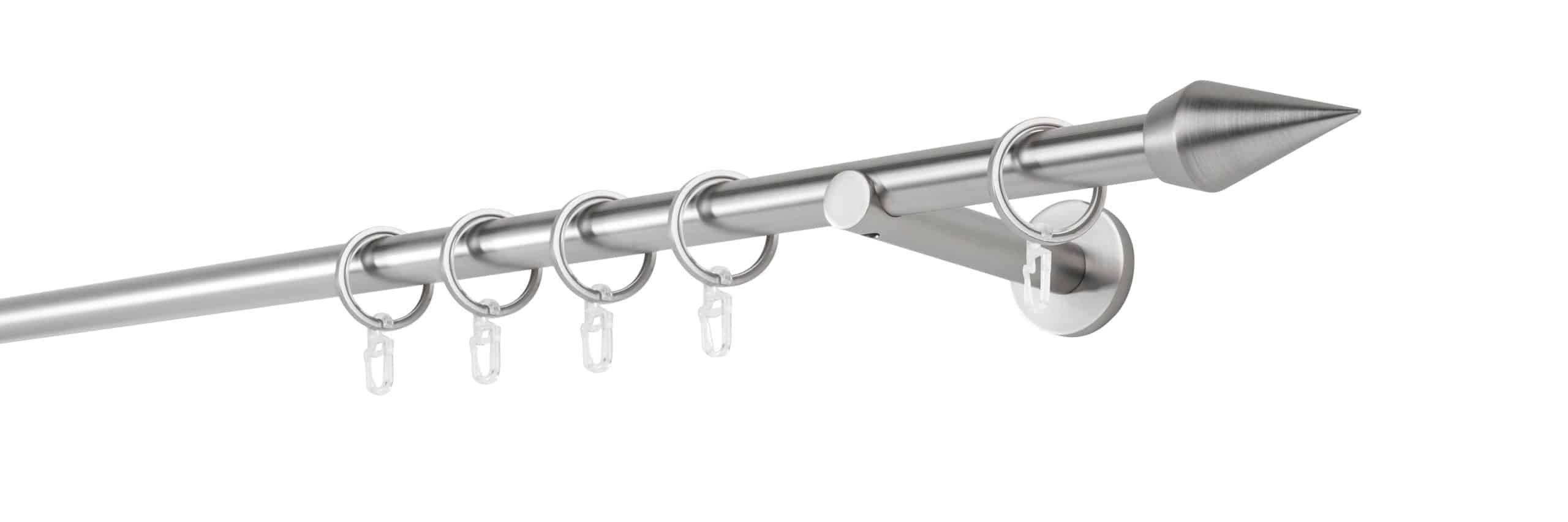 Willkommen in der Welt stilvoller und funktionaler Wohnraumgestaltung! Mit unserem hochwertigen 20mm, 1-läufigen Rohr-Wandträger-Set in edler Edelstahl-Optik verwandeln Sie Ihre Fensterdekoration in ein echtes Highlight. Dieses Komplettset, bestehend aus einem 300 cm langen Rohr, robusten Wandträgern mit einer Ausladung von 12 cm und eleganten Endstücken im Point-Design, bietet Ihnen die perfekte Grundlage für individuelle Gardinen- und Vorhanglösungen.