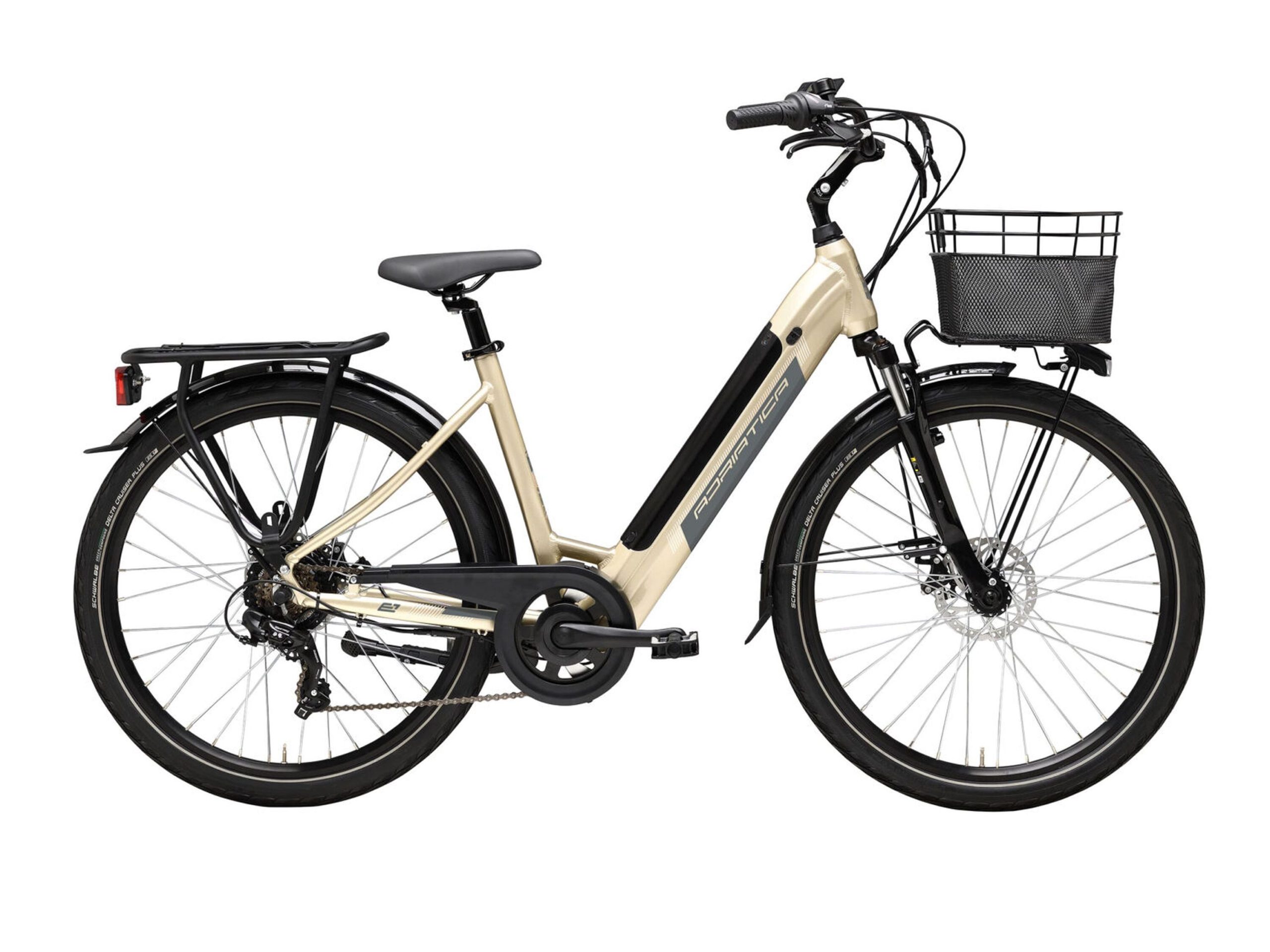 Mit dem Adriatica Elektro-Citybike E1 in Champagner wird jede Fahrt zu einem stilvollen Statement. Stell Dir vor, wie Du sanft und elegant durch die Straßen gleitest, die Blicke auf Dich ziehst und dabei die frische Luft genießt. Dieses E-Bike ist mehr als nur ein Fortbewegungsmittel – es ist ein Ausdruck Deines Lebensgefühls, Deiner Liebe zur Ästhetik und Deines Bewusstseins für eine nachhaltige Zukunft.