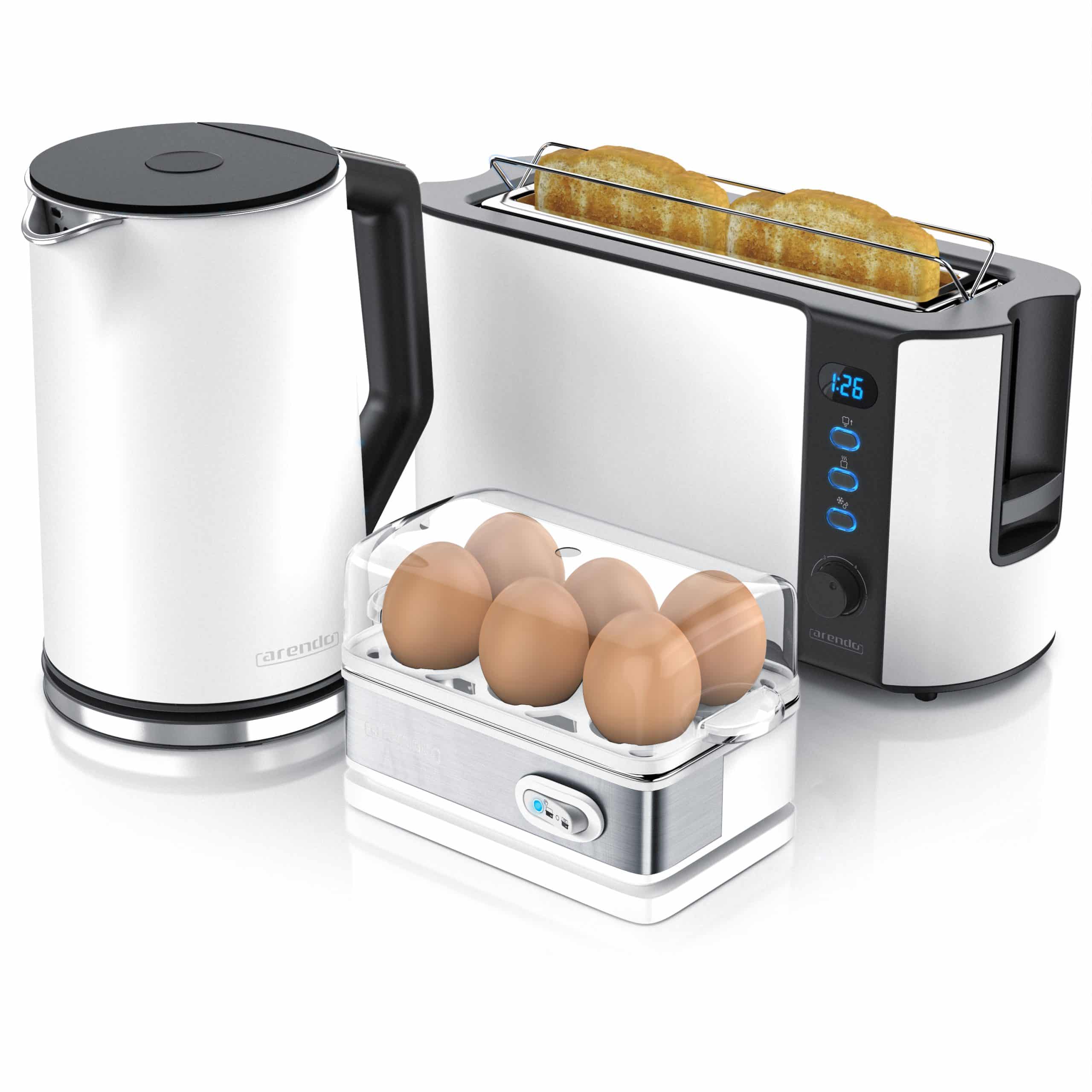 Starte deinen Tag mit dem Arendo Frühstücks-Set in elegantem Weiß und verwandle deine Küche in eine Wohlfühloase! Dieses Set, bestehend aus Wasserkocher, Toaster und Eierkocher, bietet alles, was du für ein perfektes Frühstück brauchst – schnell, unkompliziert und stilvoll. Lass dich von Funktionalität, Design und der einfachen Bedienung begeistern und starte jeden Morgen mit Genuss.
