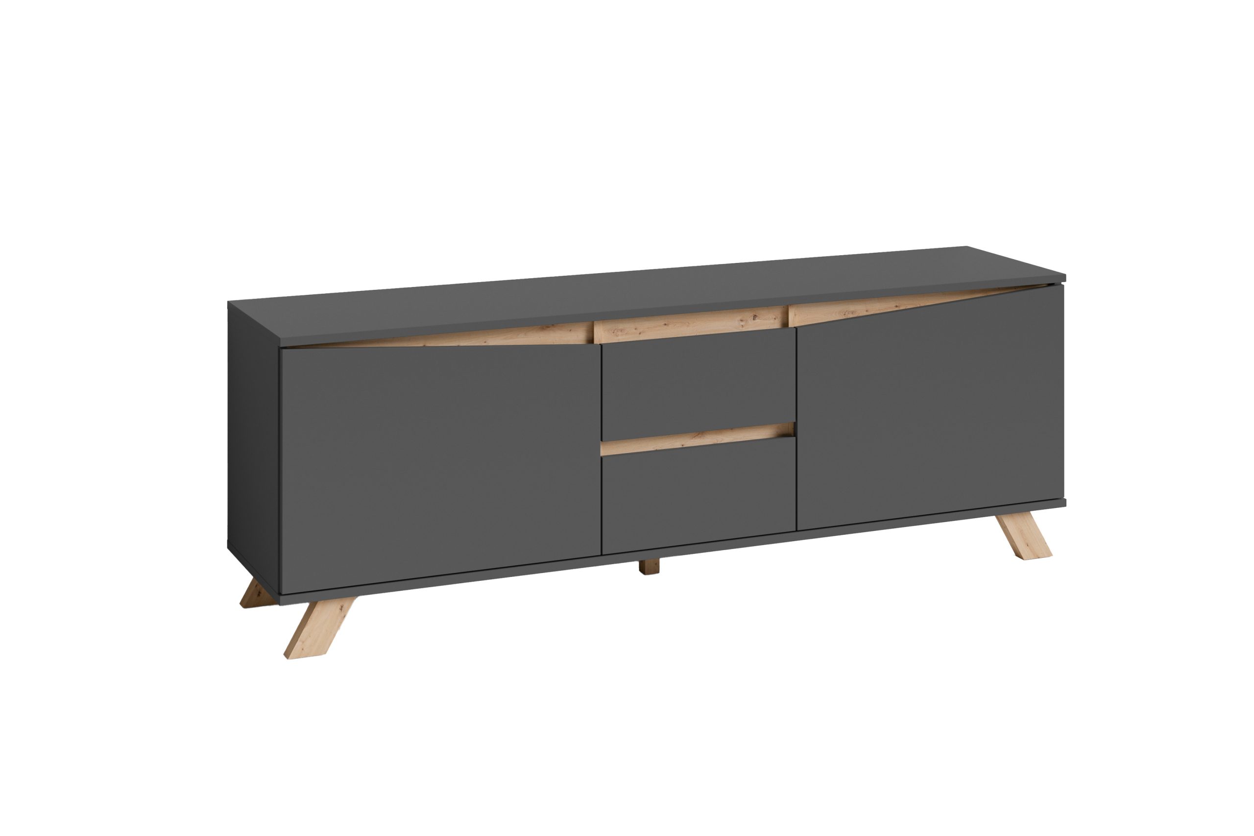 Das TV-Board VALENTIN besticht durch seine klaren Linien und die harmonische Kombination aus modernem Anthrazit und der warmen, natürlichen Optik der Artisan Eiche. Diese Farbgebung verleiht Ihrem Wohnzimmer eine elegante und zugleich einladende Atmosphäre. Das Design ist zeitlos und passt sich mühelos verschiedenen Einrichtungsstilen an – von modern und minimalistisch bis hin zu gemütlich und skandinavisch.