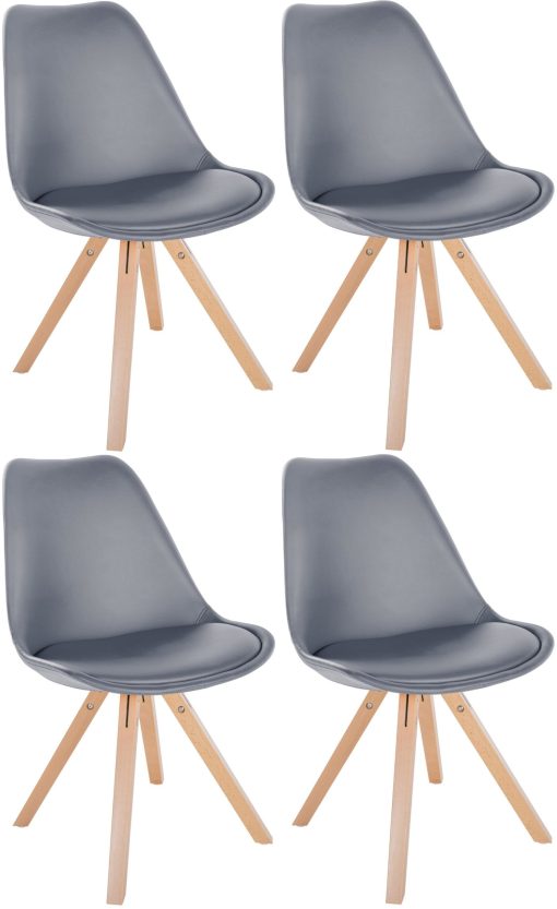 Der hochwertige Kunstlederbezug fühlt sich nicht nur angenehm an, sondern ist auch äußerst pflegeleicht und strapazierfähig. So haben Sie lange Freude an Ihren neuen Stühlen. Die bequeme Polsterung sorgt für ein entspanntes Sitzerlebnis, auch über längere Zeiträume. Das robuste 4-Fuß Holzgestell garantiert Stabilität und Langlebigkeit. Die Sofia Stühle sind somit die perfekte Wahl für alle, die Wert auf Qualität, Komfort und Design legen.