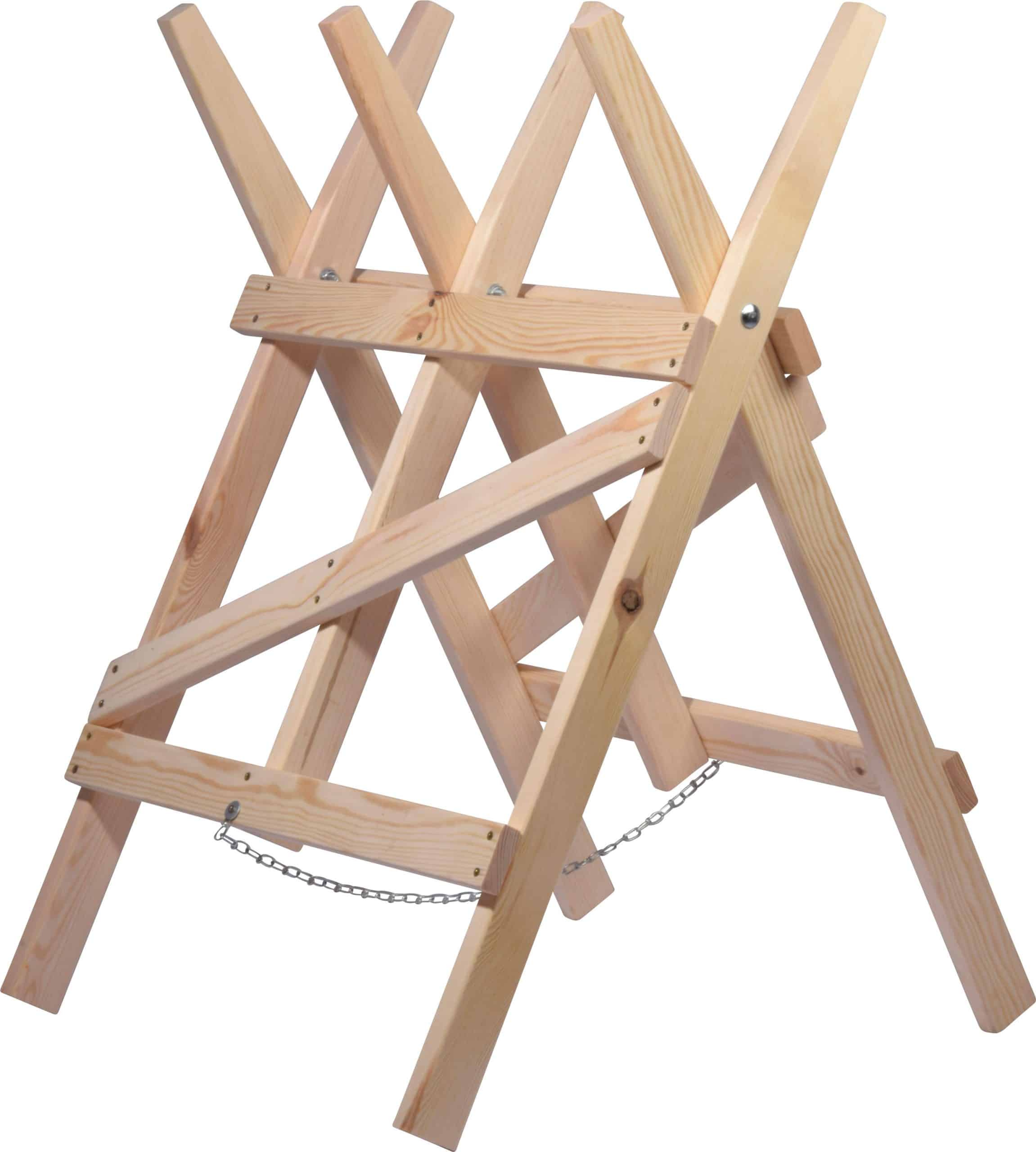 - Platzsparende Lagerung: Bei Nichtgebrauch lässt sich der Sägebock platzsparend zusammenklappen.