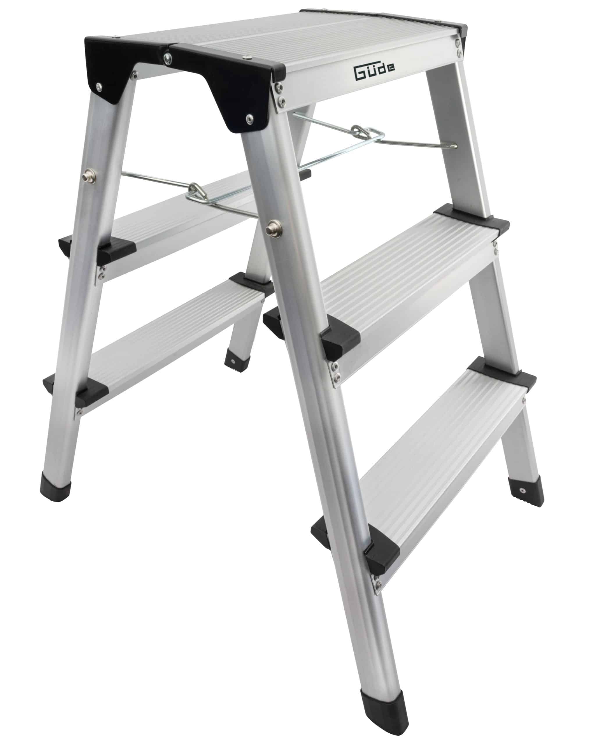 Die Güde Aluminium Trittleiter GAT 3S besteht aus hochwertigem Aluminium. Dieses Material ist leicht, stabil und korrosionsbeständig, was eine lange Lebensdauer der Leiter gewährleistet.