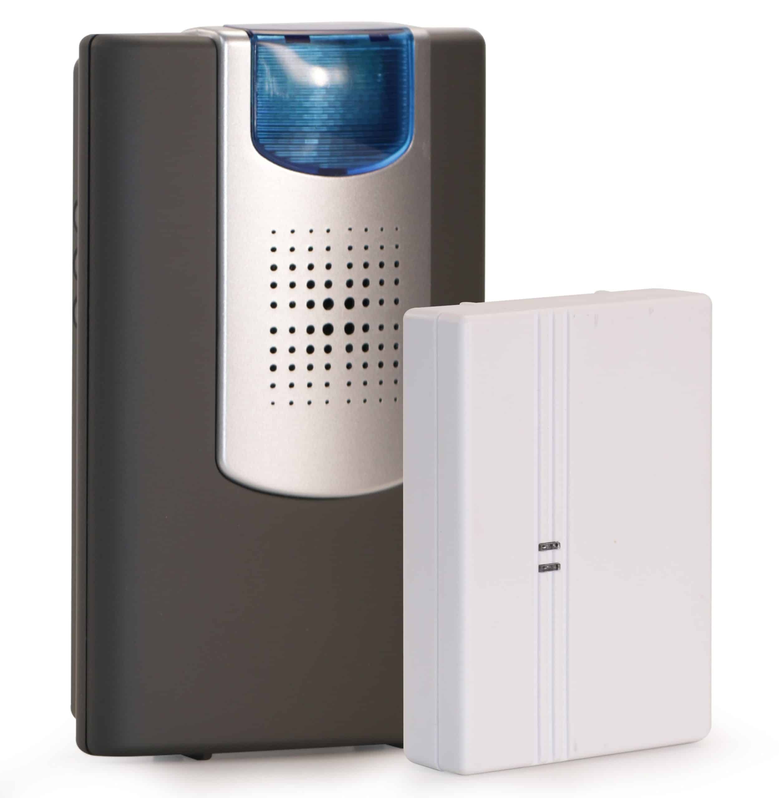- Empfänger: Empfängt das Funksignal und gibt ein akustisches und/oder optisches Signal aus.