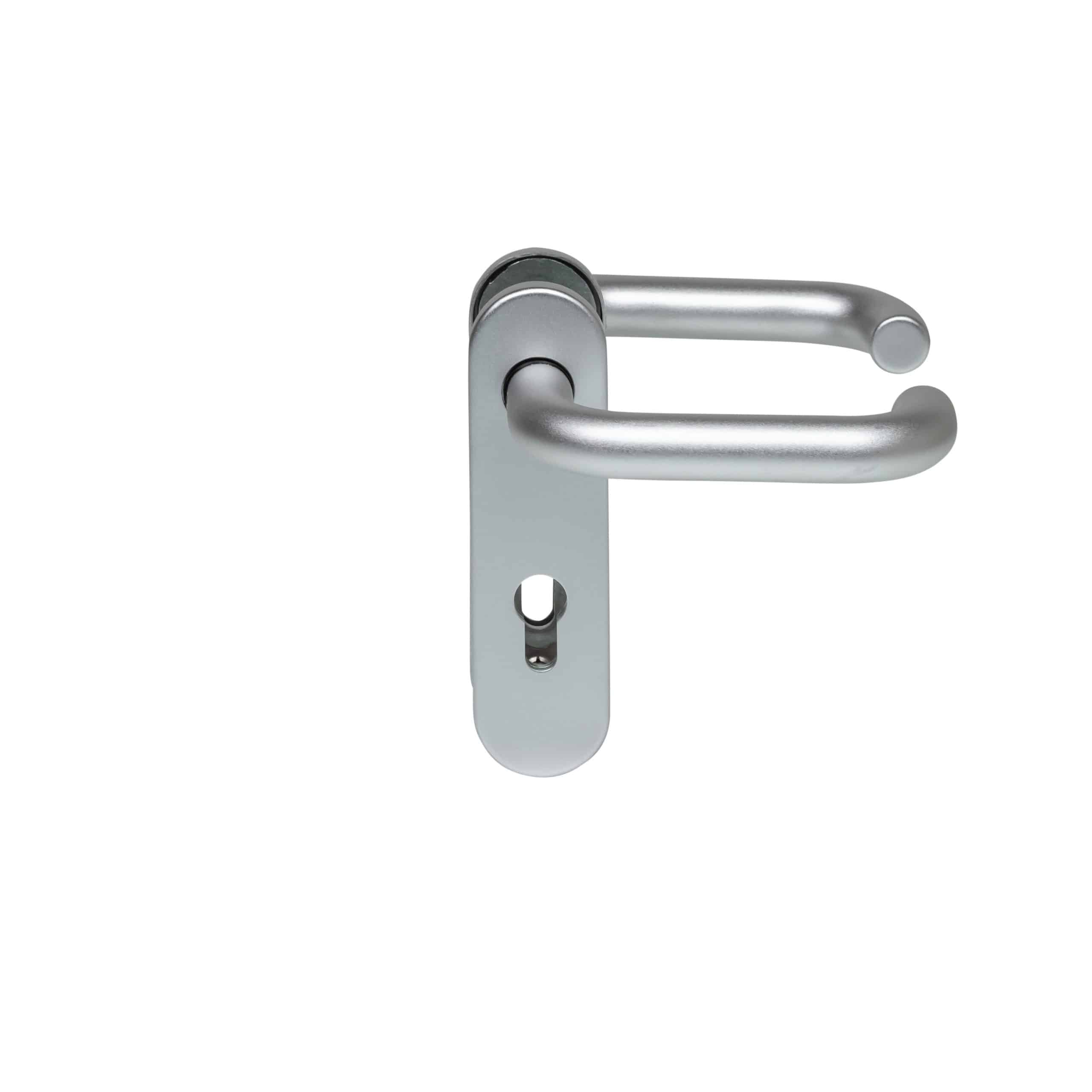 Das schlichte und elegante Design der D-110 Kurzschildgarnitur in Aluminium F1 fügt sich nahtlos in nahezu jeden Einrichtungsstil ein. Ob modern, klassisch oder puristisch – die zeitlose Optik dieser Garnitur verleiht Ihren Türen einen Hauch von Eleganz und Wertigkeit. Das Kurzschild-Design betont die klare Linienführung und sorgt für ein harmonisches Gesamtbild. Das Aluminium F1 Finish ist nicht nur optisch ansprechend, sondern auch besonders widerstandsfähig und pflegeleicht. Es behält seinen Glanz über Jahre hinweg und trotzt den täglichen Beanspruchungen mühelos. Die Farbe harmoniert ideal mit unterschiedlichen Türblättern und verleiht Ihren Räumen einen stilvollen Akzent.