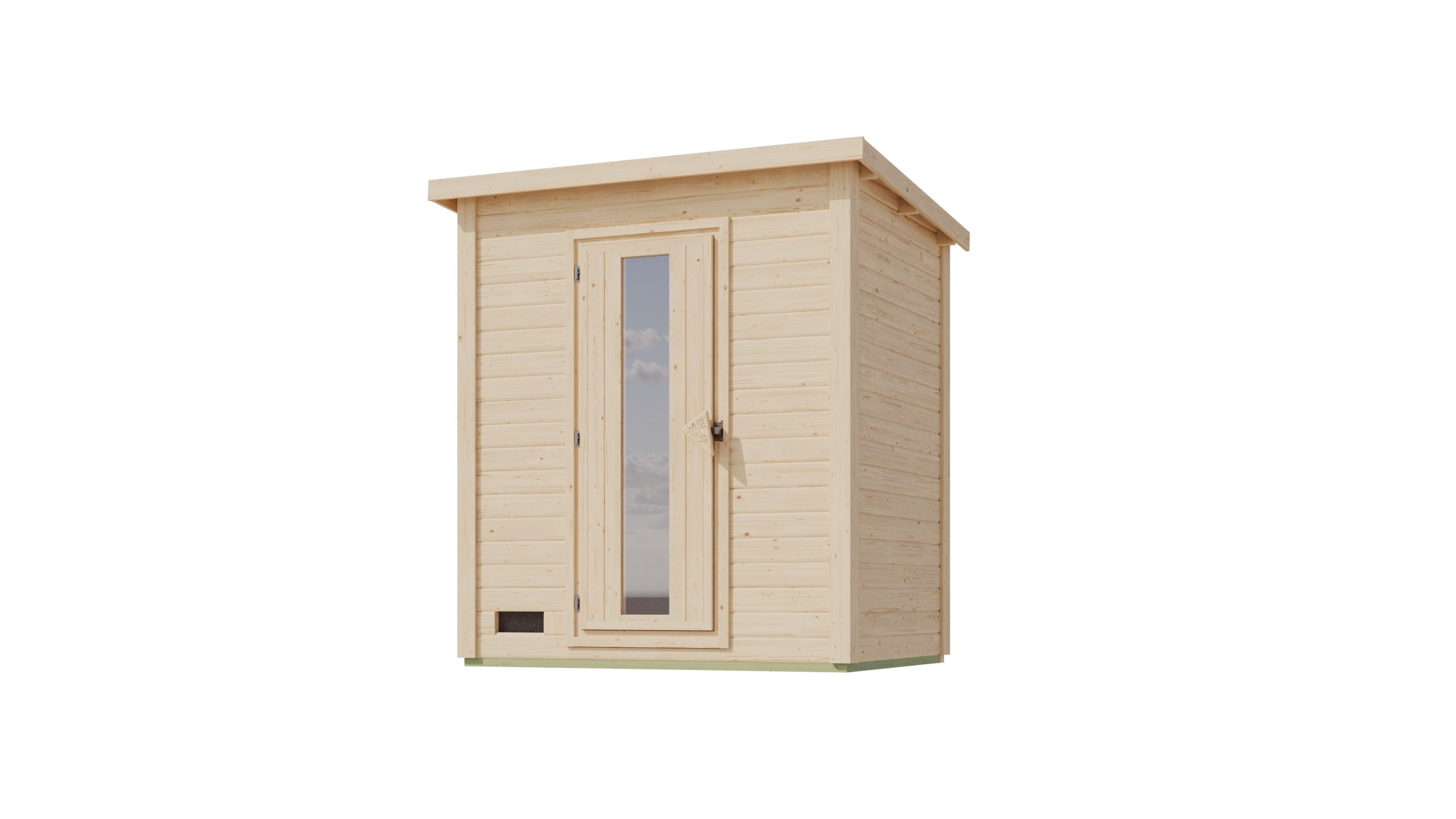Zusätzlich zu den Saunabänken verfügt das Melo 1 über eine Tür mit Glaseinsatz, die für ausreichend Licht im Inneren der Sauna sorgt und Ihnen gleichzeitig einen Blick nach draußen ermöglicht. Der Glaseinsatz ist aus gehärtetem Sicherheitsglas gefertigt und bietet eine hohe Stabilität und Sicherheit.