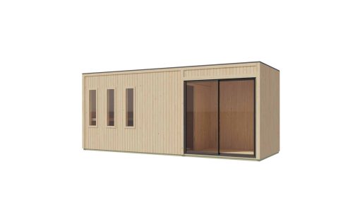 Das Saunahaus ist mit einer Ganzglastür aus Sicherheitsglas ausgestattet, die nicht nur für einen modernen Look sorgt, sondern auch für ausreichend Licht im Innenraum. So können Sie Ihre Sauna-Session in vollen Zügen genießen, ohne sich eingeengt zu fühlen.