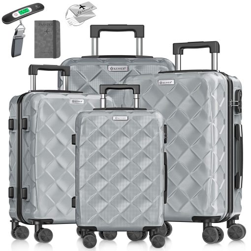 Das KESSER® Kofferset besticht durch seine durchdachte Konstruktion und die hochwertigen Materialien. Die robusten ABS Hartschalen schützen Ihr Gepäck zuverlässig vor Stößen und Beschädigungen, während die 360° Rollen ein müheloses Manövrieren ermöglichen. Das integrierte Zahlenschloss sorgt für zusätzliche Sicherheit, und die inkludierte Kofferwaage hilft Ihnen, unangenehme Überraschungen am Check-in Schalter zu vermeiden. Die praktische Reisebrieftasche hält Ihre wichtigsten Dokumente griffbereit.