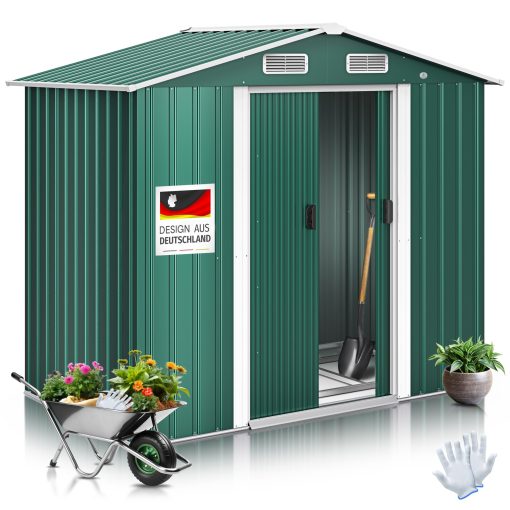 Träumen Sie von einem aufgeräumten Garten, in dem Sie Ihre Gartengeräte, Werkzeuge und Outdoor-Spielzeuge sicher und wettergeschützt verstauen können? Mit dem KESSER® XL Metall Gerätehaus wird dieser Traum Wirklichkeit. Dieser Geräteschuppen ist nicht nur ein praktischer Stauraum, sondern auch eine ästhetische Bereicherung für Ihren Garten. Das moderne Design mit dem eleganten Satteldach fügt sich harmonisch in jede Gartenlandschaft ein.