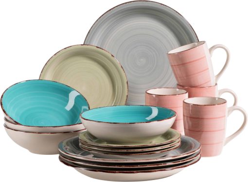 Das Mäser Geschirr-Set „Lumaca“ ist in einer harmonischen Farbpalette erhältlich, die von natürlichen Erdtönen bis hin zu sanften Pastellfarben reicht. Die Farben sind sorgfältig aufeinander abgestimmt und lassen sich wunderbar miteinander kombinieren. Die organischen Formen und die leicht unregelmäßigen Oberflächen verleihen dem Geschirr eine lebendige, authentische Ausstrahlung.