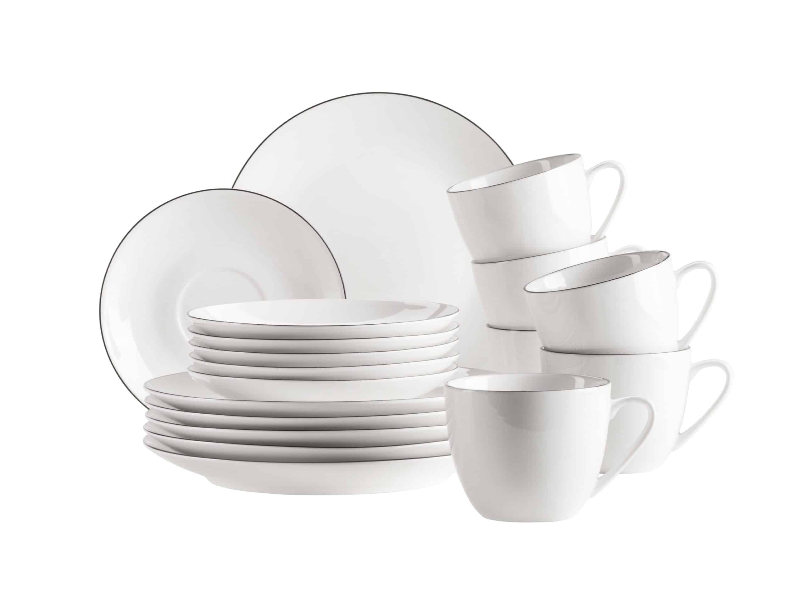 Das Kaffeeservice Felise ist in der Farbkombination Weiß / Schwarz erhältlich. Diese zeitlose Kombination verleiht dem Service eine moderne und elegante Optik.