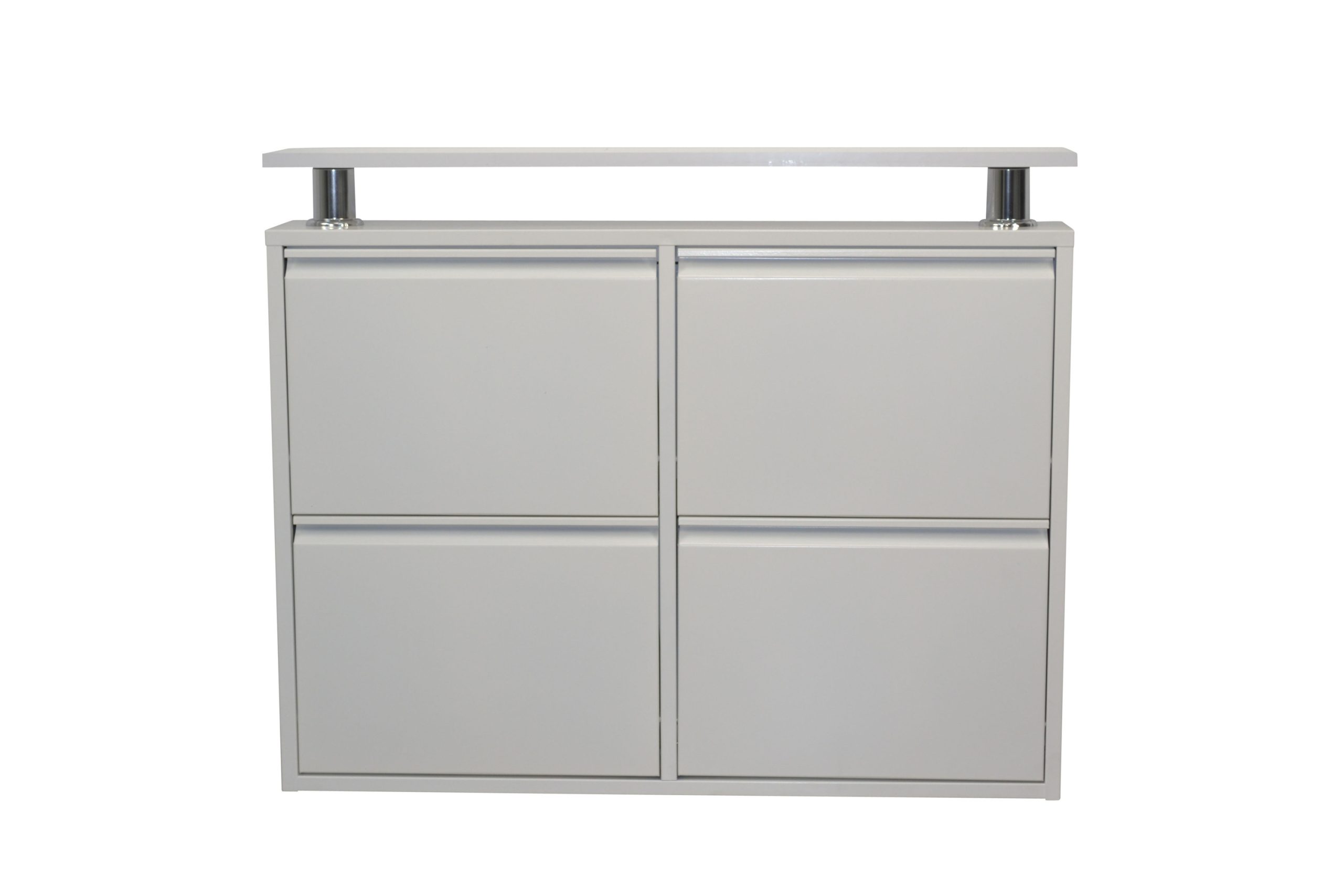 Mit seinen vier geräumigen Klappen bietet der **Metallschuhschrank Palma** ausreichend Platz für deine gesamte Schuhsammlung. Jede Klappe ist so konzipiert, dass sie mehrere Paar Schuhe aufnehmen kann, sodass du deine Schuhe ordentlich und platzsparend verstauen kannst. Auch für größere Schuhe, wie beispielsweise Stiefel, ist genügend Platz vorhanden. So hast du deine Schuhe immer griffbereit und dein Flur bleibt frei von Unordnung.