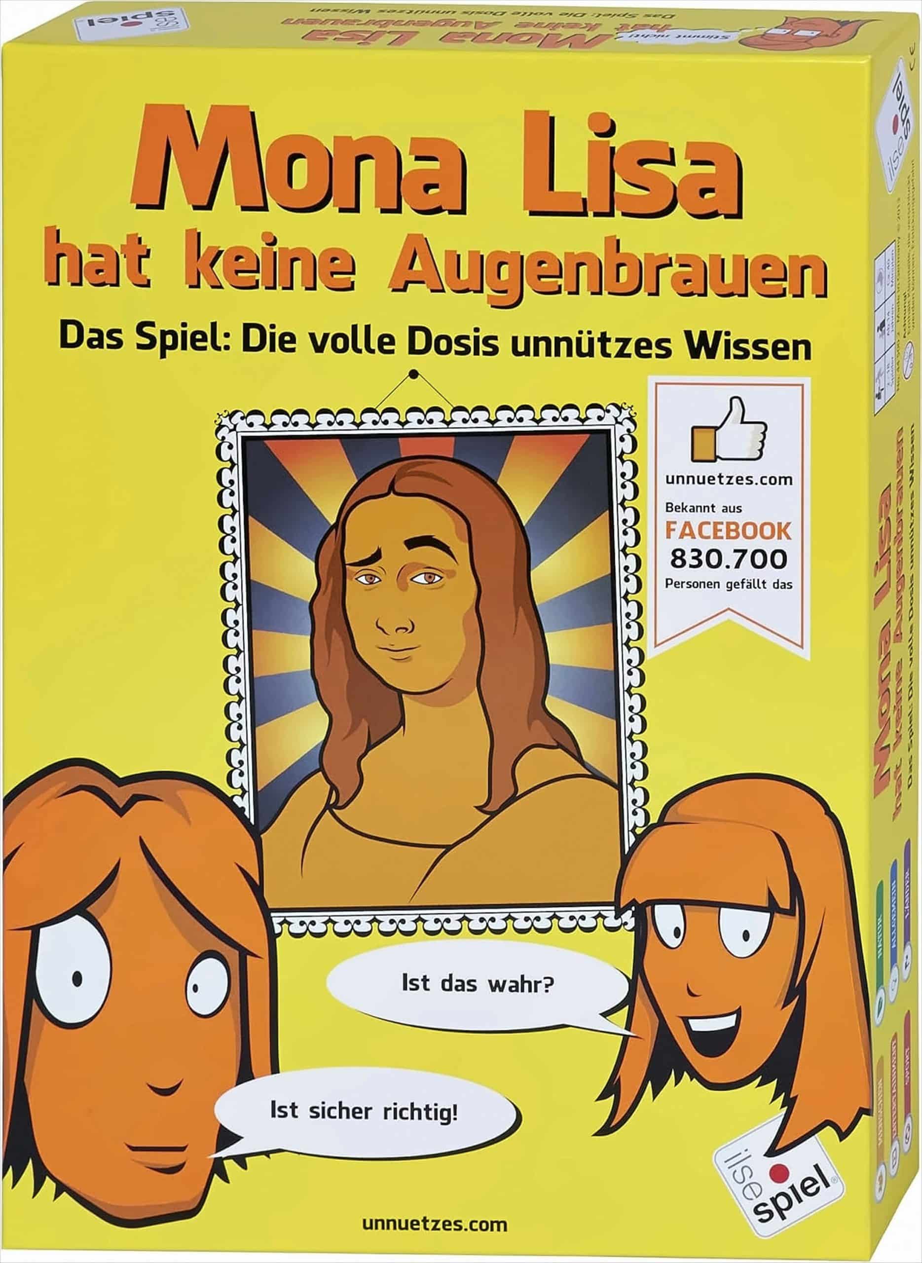 Dieses Spiel ist perfekt für alle, die nach einer einzigartigen und unterhaltsamen Möglichkeit suchen, ihr Wissen zu erweitern und gleichzeitig einen unvergesslichen Abend mit ihren Liebsten zu verbringen. Egal, ob ihr eingefleischte Quiz-Fans seid oder einfach nur auf der Suche nach einer neuen Herausforderung – „Mona Lisa hat keine Augenbrauen“ wird euch begeistern!