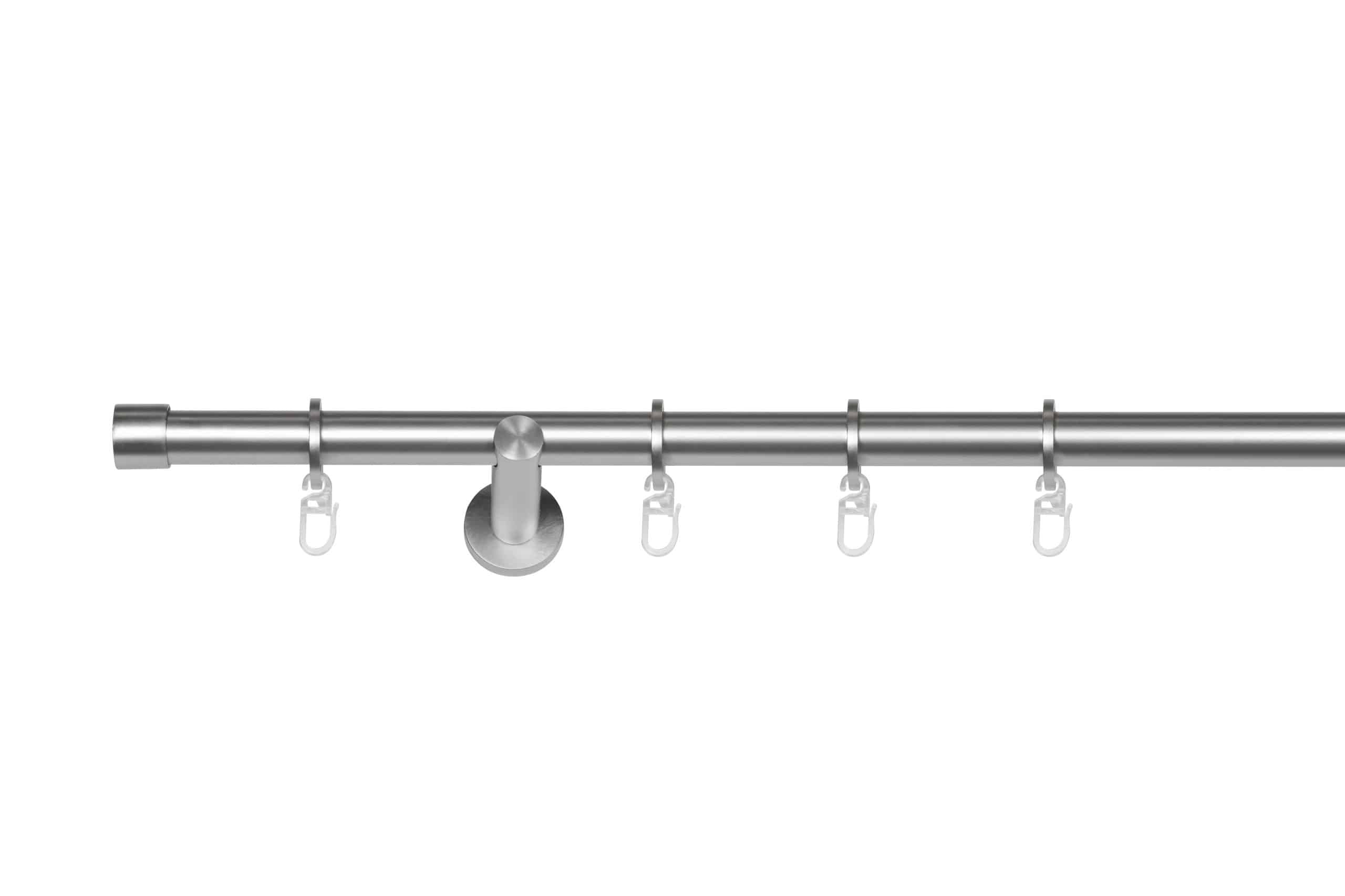 Die Komplettgarnitur beinhaltet alles, was Sie für die Montage benötigen: eine einläufige Gardinenstange mit einem Durchmesser von 20 mm, zwei formschöne Endstücke im Ball-Design, robuste Wandträger, passende Gardinenringe und praktische Faltenlegehaken. So können Sie Ihre Gardinen oder Vorhänge im Handumdrehen anbringen und von einem perfekten Faltenwurf profitieren.