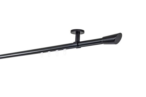 Verwandeln Sie Ihre Fenster in atemberaubende Designelemente mit der Ondeco Gardinenstange auf Maß Innenlauf 20mm Rag 1-lauf in elegantem Schwarz. Diese hochwertige Gardinenstange, gefertigt mit Präzision und Liebe zum Detail, bietet Ihnen die perfekte Kombination aus Funktionalität und Ästhetik. Mit einer Länge von 240cm und einem dezenten Deckenträger von 4cm fügt sie sich nahtlos in jeden Raum ein und verleiht ihm einen Hauch von modernem Luxus.