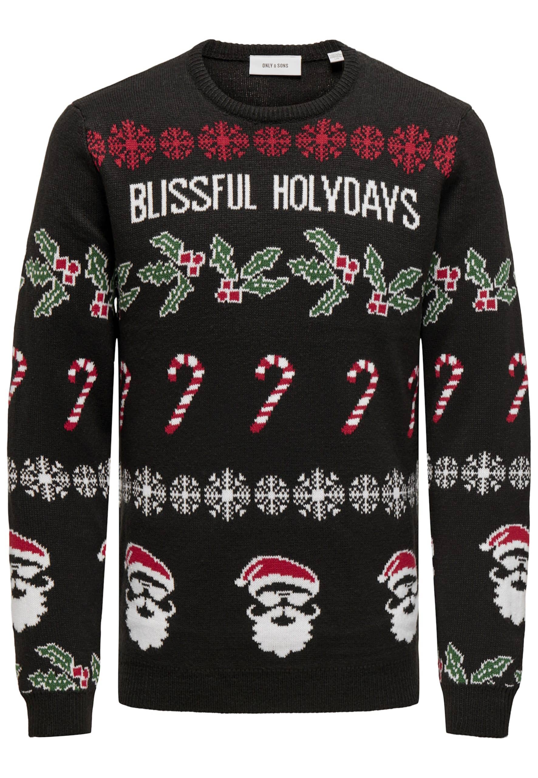 Lass deiner Kreativität freien Lauf und kreiere deinen ganz persönlichen Weihnachtslook mit dem Only & Sons XMAS ALLOVER Strickpullover R-Neck.