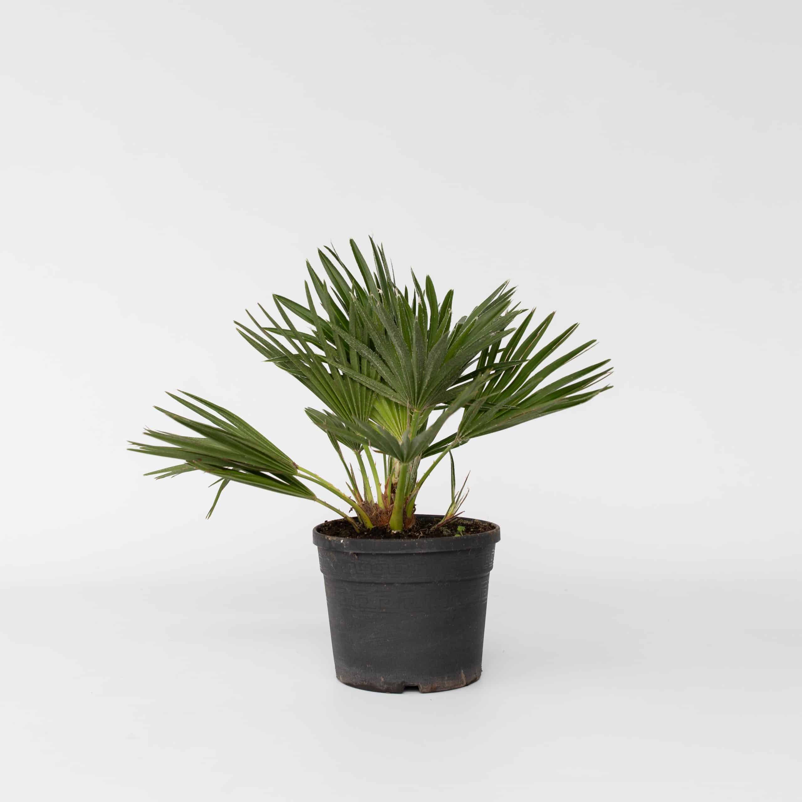 Überwinterung: Die Chamaerops ‚Vulcano‘ ist winterhart, sollte aber bei Temperaturen unter -5°C geschützt werden. Stellen Sie die Pflanze an einen kühlen, hellen Ort und gießen Sie sie nur wenig. Alternativ können Sie die Palme auch draußen lassen und den Topf mit Jute oder Noppenfolie isolieren.