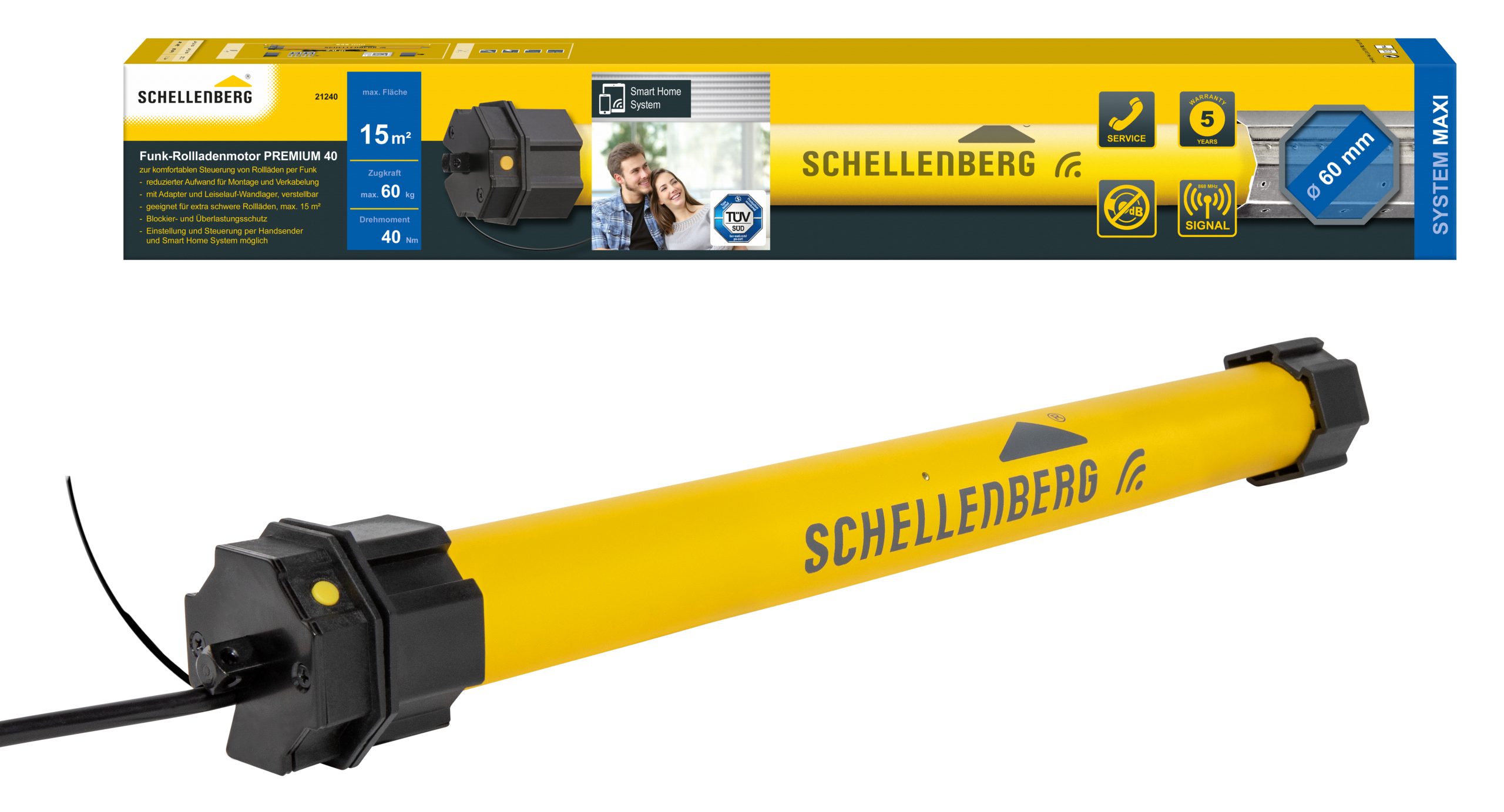 Technische Details und Funktionen des Schellenberg Funk-Rolladenmotor Premium 40 Nm Maxi