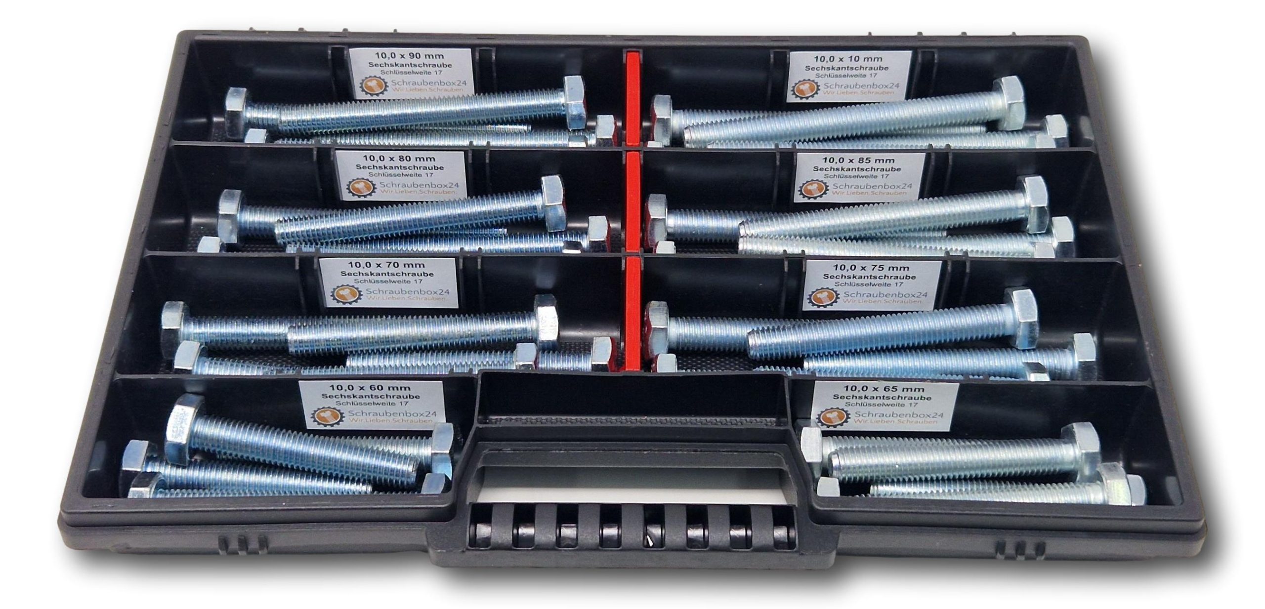 Dieses Sortiment beinhaltet eine sorgfältig zusammengestellte Auswahl an M10 Sechskantschrauben mit verschiedenen Längen, um Ihnen maximale Flexibilität bei Ihren Projekten zu bieten. Die Schrauben sind aus hochwertigem Material gefertigt und bieten eine hohe Zugfestigkeit und Korrosionsbeständigkeit. Die praktische Schraubenbox sorgt für eine übersichtliche Aufbewahrung und einfachen Transport, sodass Sie jederzeit die passende Schraube griffbereit haben.