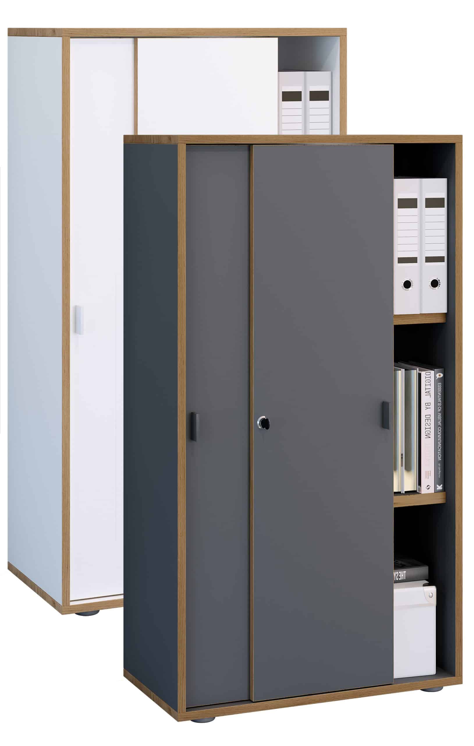 Mit seinen drei großzügigen Fächern bietet der VCM Büroschrank Salia ausreichend Platz für Ihre Akten, Ordner und Büromaterialien. Die Fächer sind in der Höhe verstellbar, sodass Sie den Stauraum individuell an Ihre Bedürfnisse anpassen können. Egal ob Sie große Ordner oder kleine Utensilien verstauen möchten, dieser Aktenschrank bietet Ihnen die Flexibilität, die Sie brauchen. Die Schiebetüren verdecken den Inhalt dezent und sorgen so für ein aufgeräumtes Erscheinungsbild.