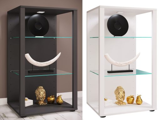 Die VCM Glasvitrine „Glasol XL“ ist in verschiedenen Ausführungen erhältlich, die sich in der Farbe der Akzente unterscheiden können. Bitte informieren Sie sich über die verfügbaren Varianten.