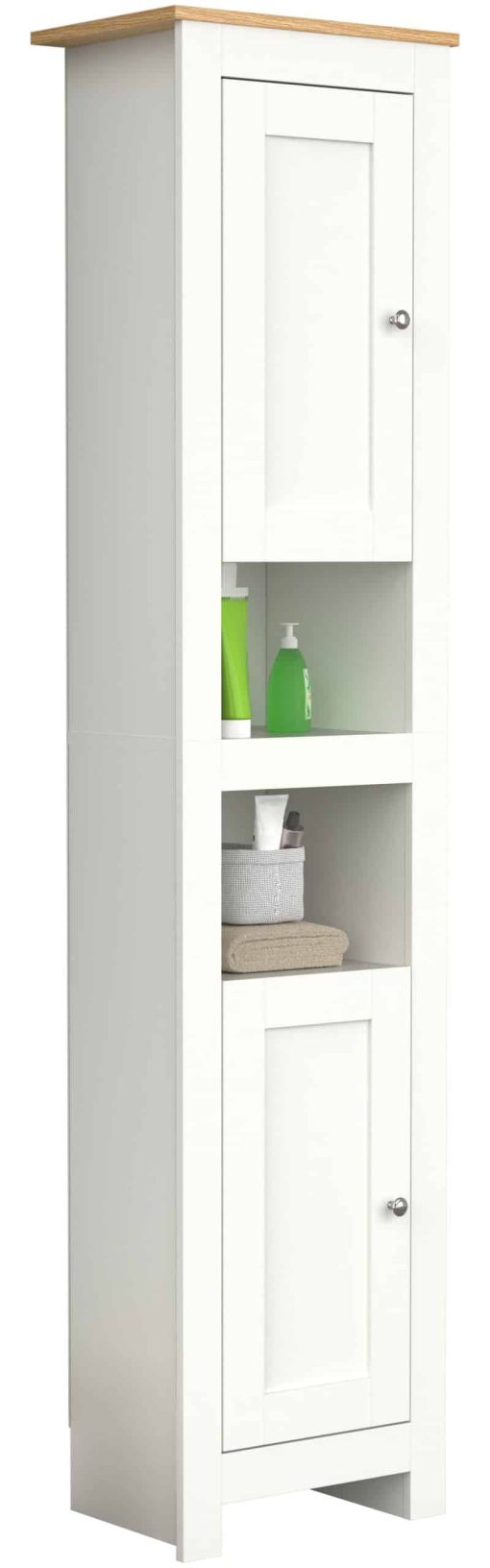 Mit seinen Maßen von ca. H. 180 x B. 42 x T. 30 cm bietet dieser Hochschrank ausreichend Stauraum, ohne dabei viel Platz einzunehmen. Er ist somit ideal für kleine und mittelgroße Badezimmer, in denen jeder Zentimeter zählt. Nutzen Sie den „Balusa“, um Handtücher, Kosmetikartikel, Reinigungsmittel und andere Badutensilien ordentlich und griffbereit zu verstauen.