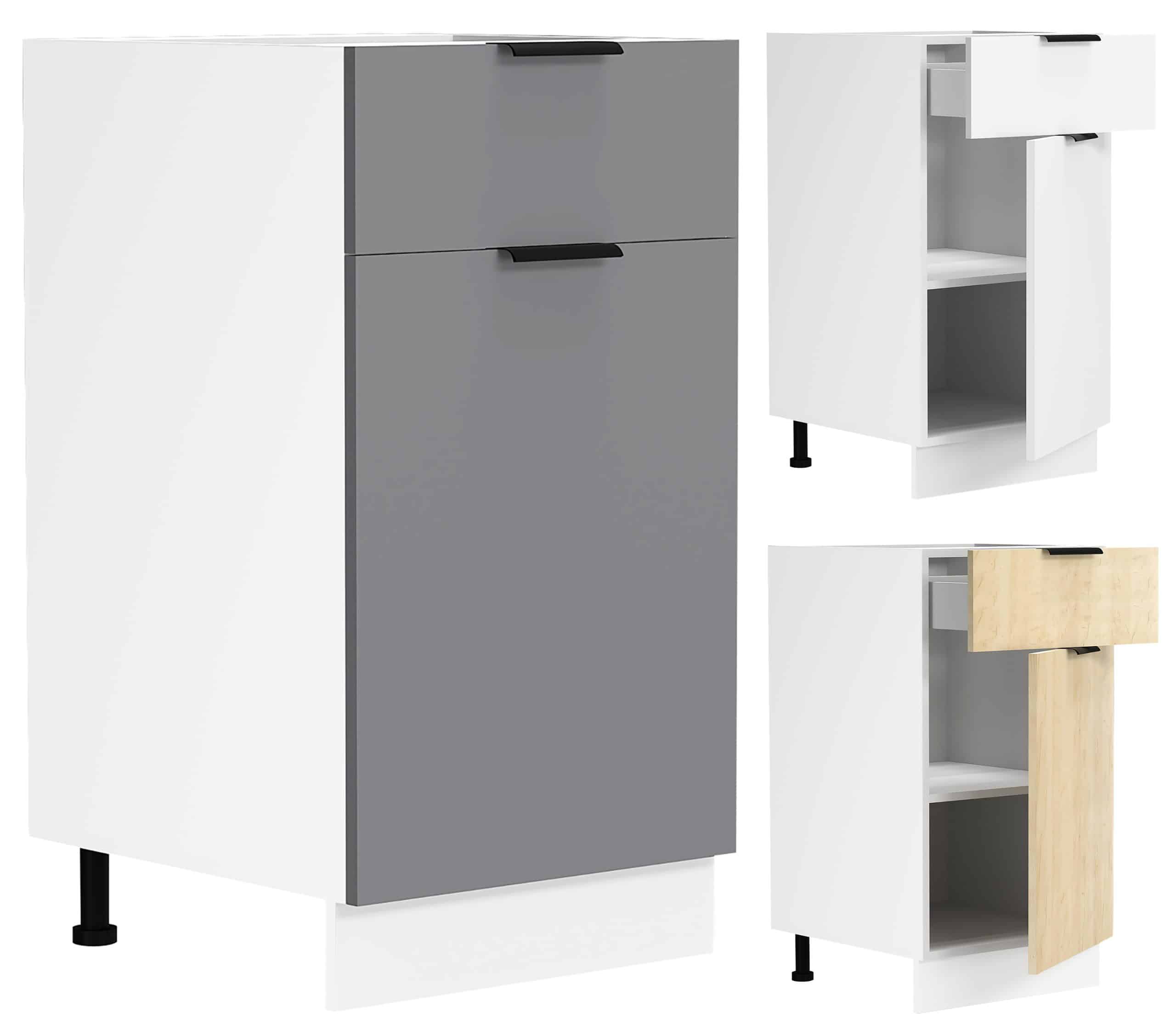 Die Drehtür des Unterschranks ist mit einem eleganten Griff versehen, der nicht nur gut aussieht, sondern auch angenehm in der Hand liegt. Die Schublade gleitet sanft und leise, sodass Sie Ihre Utensilien bequem verstauen können. Die Oberflächen sind pflegeleicht und widerstandsfähig, sodass Sie lange Freude an Ihrem neuen Küchenschrank haben werden. Mit dem VCM Küchenschrank „Fasola“ holen Sie sich ein Möbelstück ins Haus, das sowohl ästhetisch ansprechend als auch äußerst funktional ist.