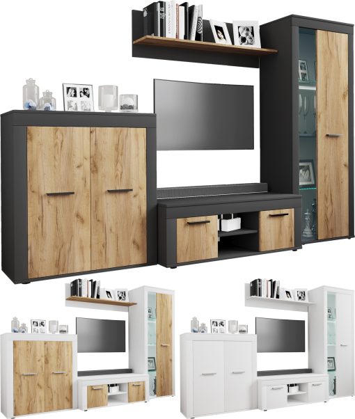 - Hochwertige Materialien: Robuste und langlebige Materialien sorgen für eine lange Lebensdauer Ihrer Wohnwand.